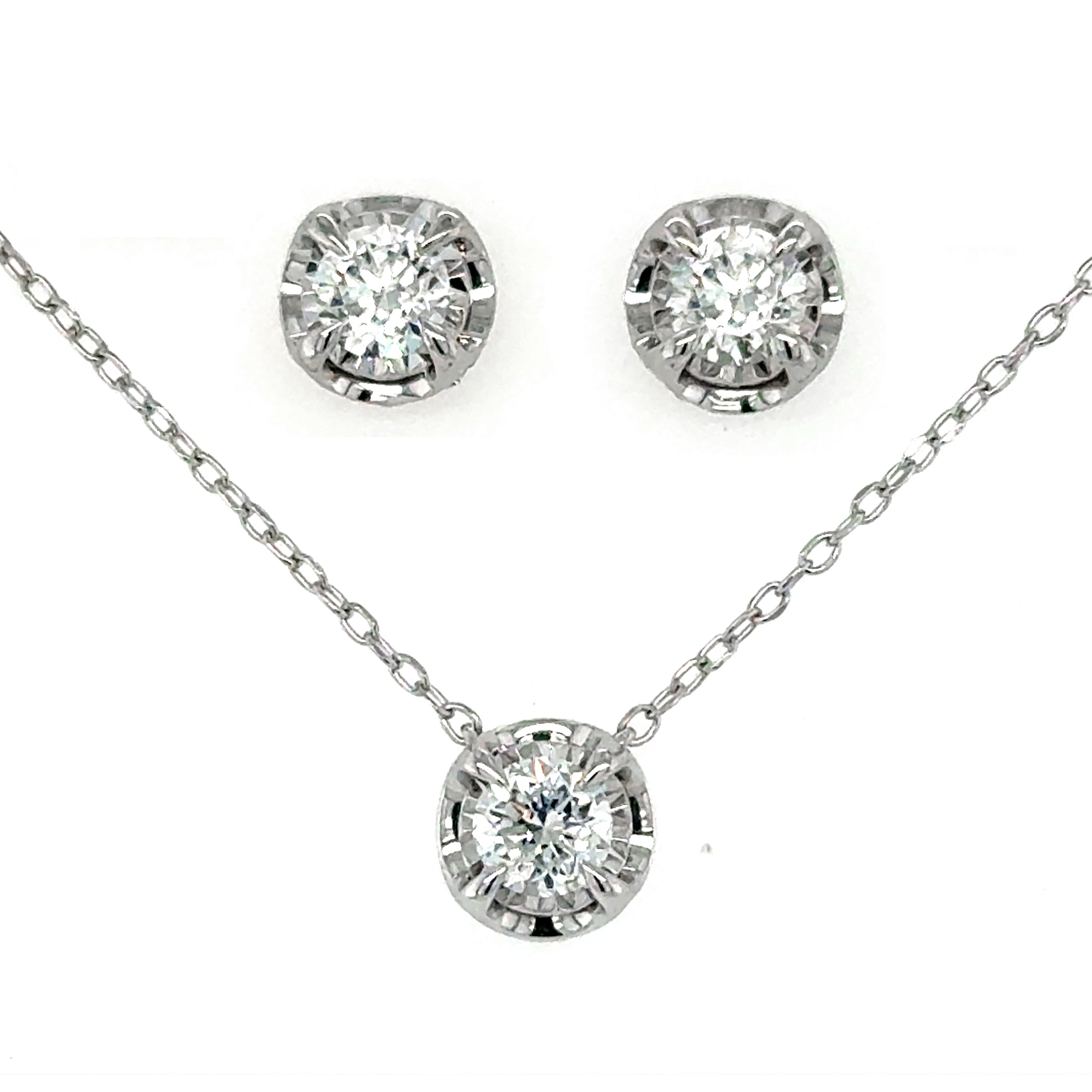 Sterling Silver Lab-Grown Diamond Necklace and Earrings Set
