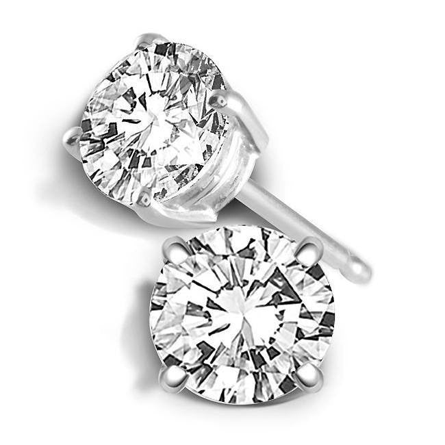 14 Karat White Gold 4-Prong Lab-Grown Diamond Solitaire Stud Earrings