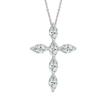 14 Karat White Gold Lab-Grown Marquise Diamond Cross Pendant