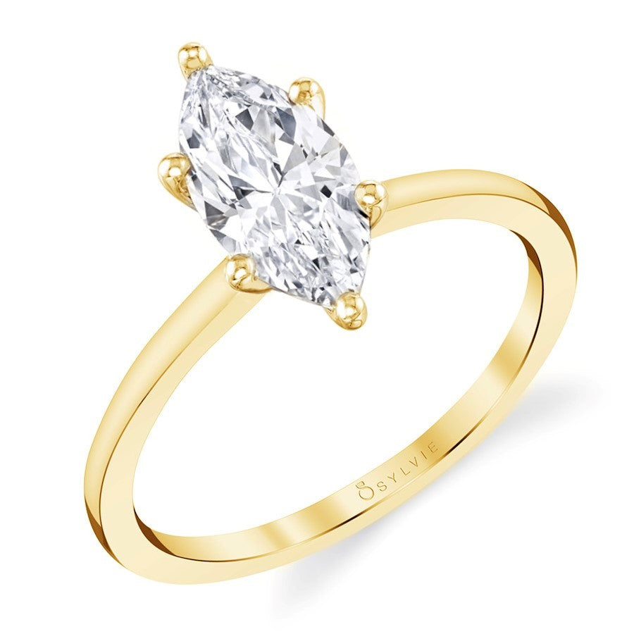 14 Karat Yellow Gold Marquise Solitaire Engagement Ring Mounting