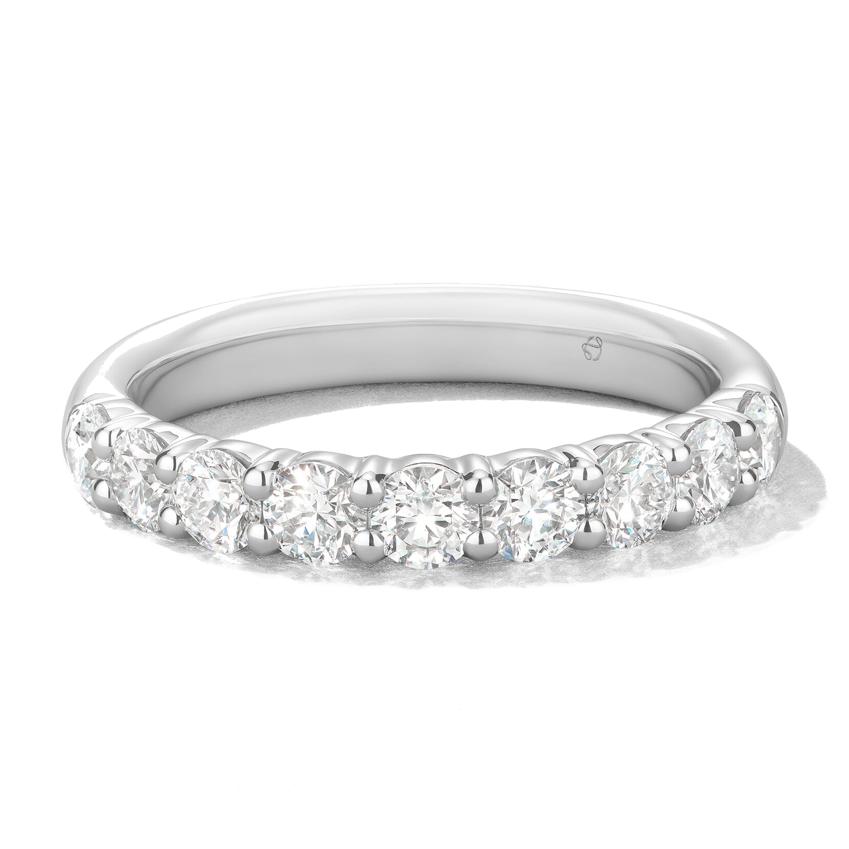 The name says it all. A string of nine perfectly cut diamonds line the top of a sleek gold band in this traditional and timeless Hearts on Fire design. Rock this band alongside an engagement ring, on its own, or add it to a stack for truly showstopping sparkle.