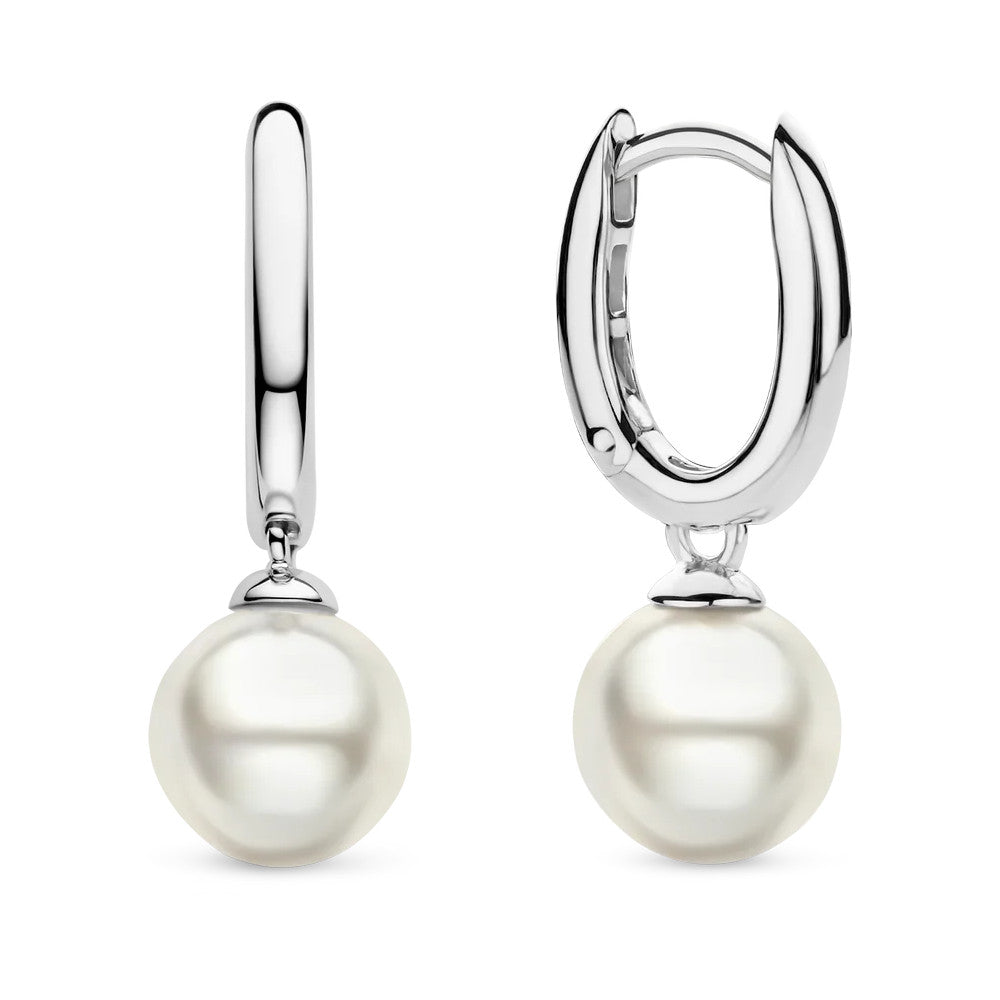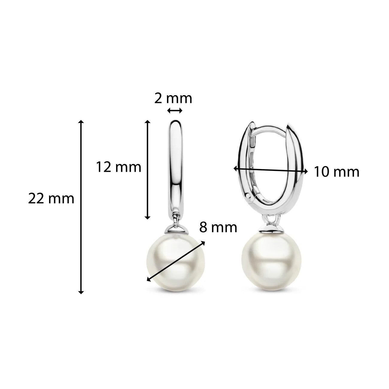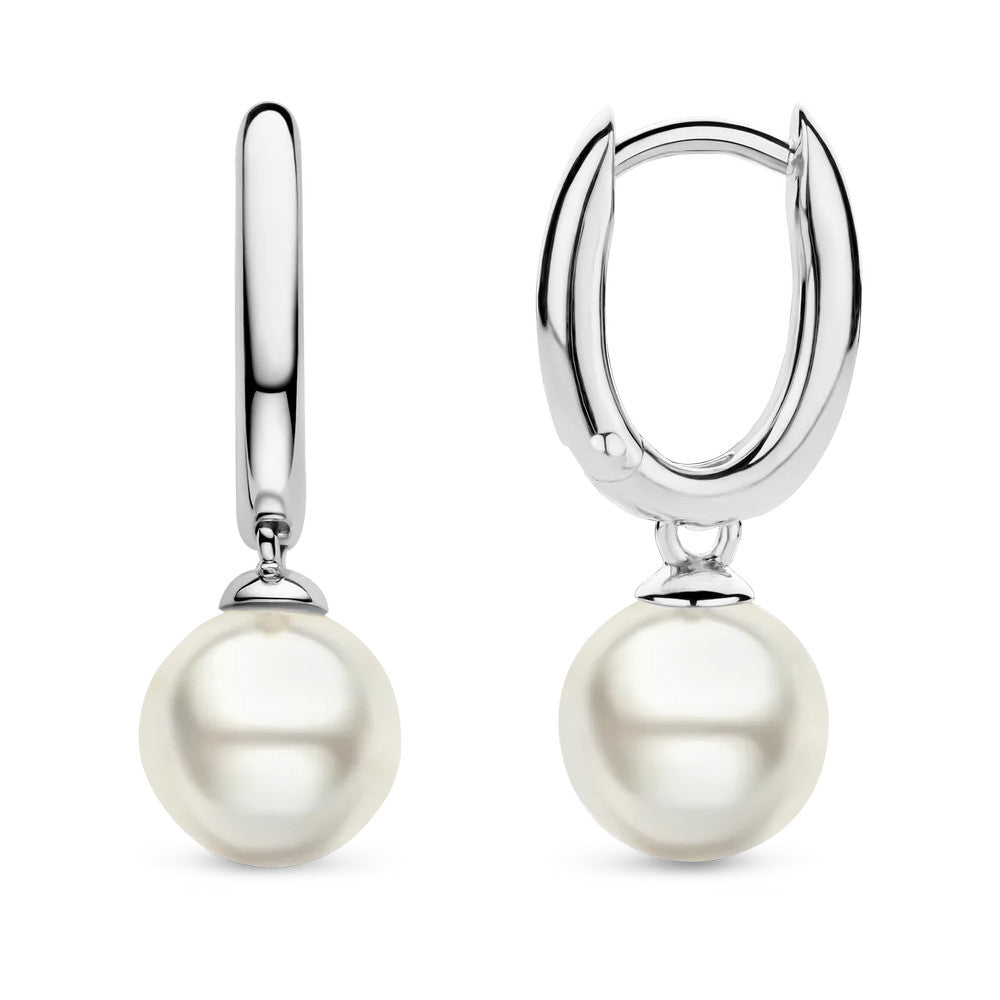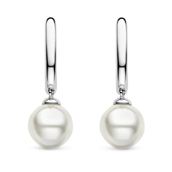 Blend the timeless beauty of pearls with the sleek allure of sterling silver in these drop earrings! Expertly crafted from sterling silver then plated in platinum for protection and enduring luminosity, a gorgeous pearl gently sways beneath. Pearls - the ultimate style boost - bring a dash of classic charm and sophistication to any outfit. Their iridescent glow adds understated luxury, captivating onlookers with timeless elegance.