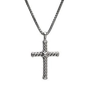 Sterling Silver/Rhodium-Plated Rope Cross Pendant on 22" Round Box Chain