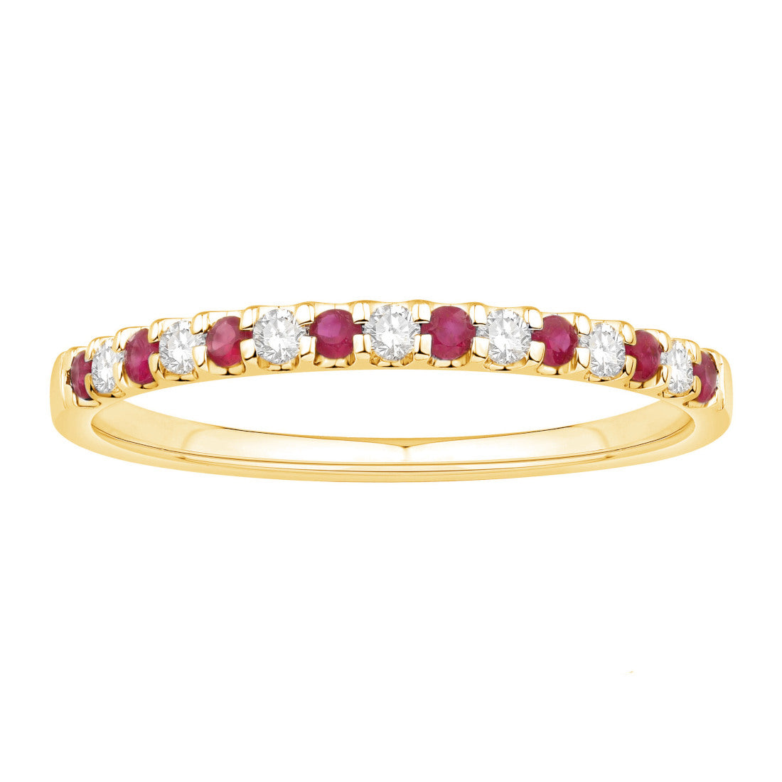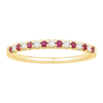 10 Karat Yellow Gold Alternating Ruby and Diamond Band