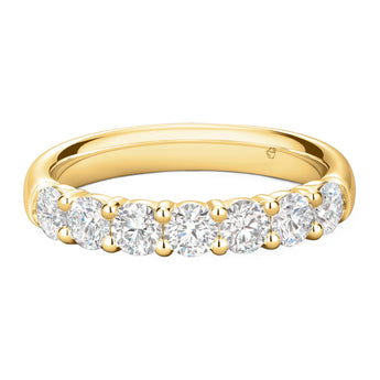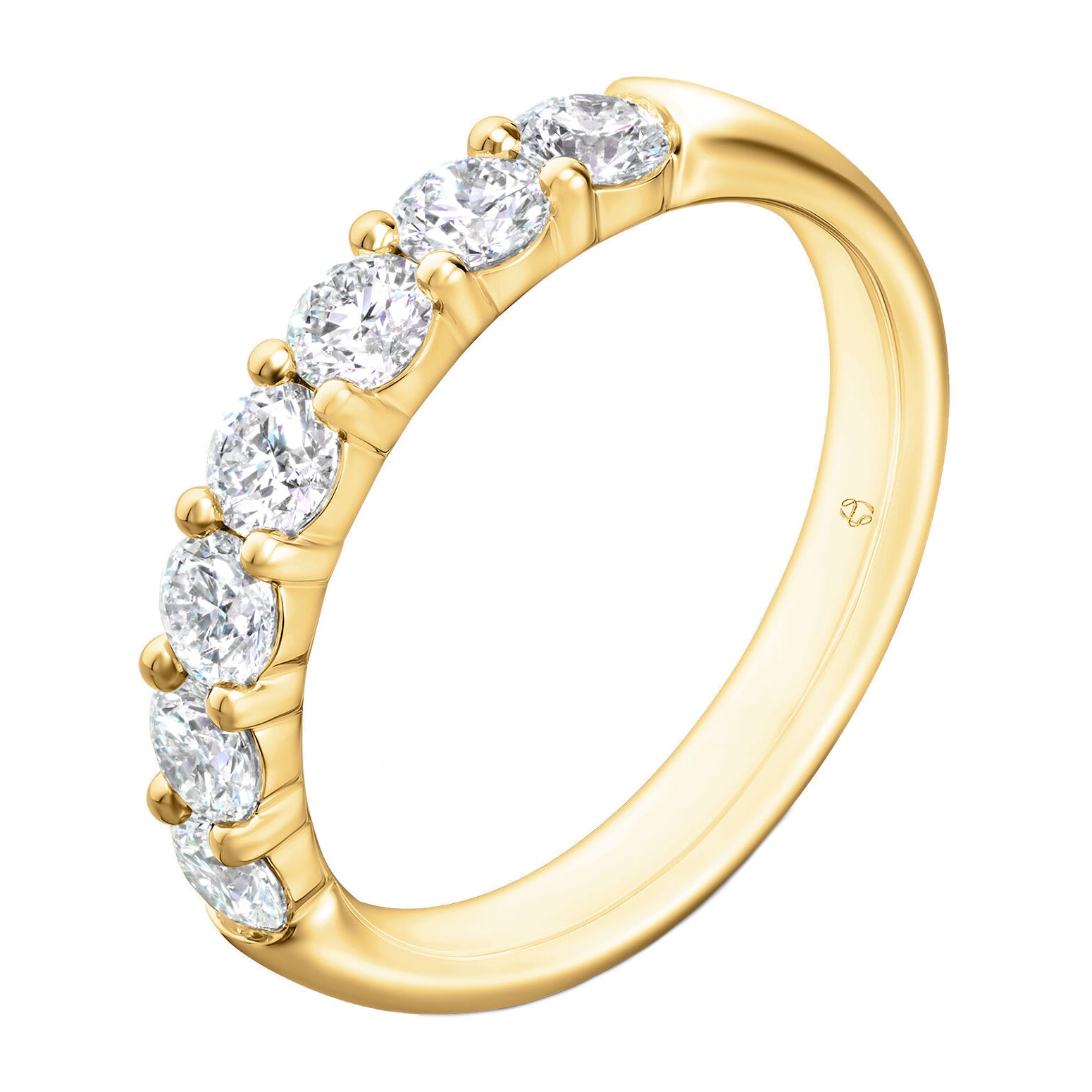 The name says it all. A string of seven perfectly cut diamonds line the top of a sleek gold band in this traditional and timeless Hearts on Fire design. Rock this band alongside an engagement ring, on its own, or add it to a stack for truly showstopping sparkle.