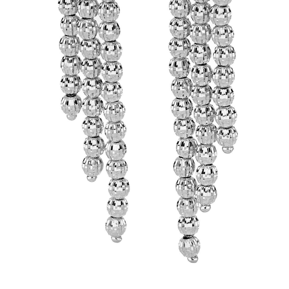 Sterling Silver/Rhodium-Plated "Crystal Drop" 3-Row Fashion Earrings