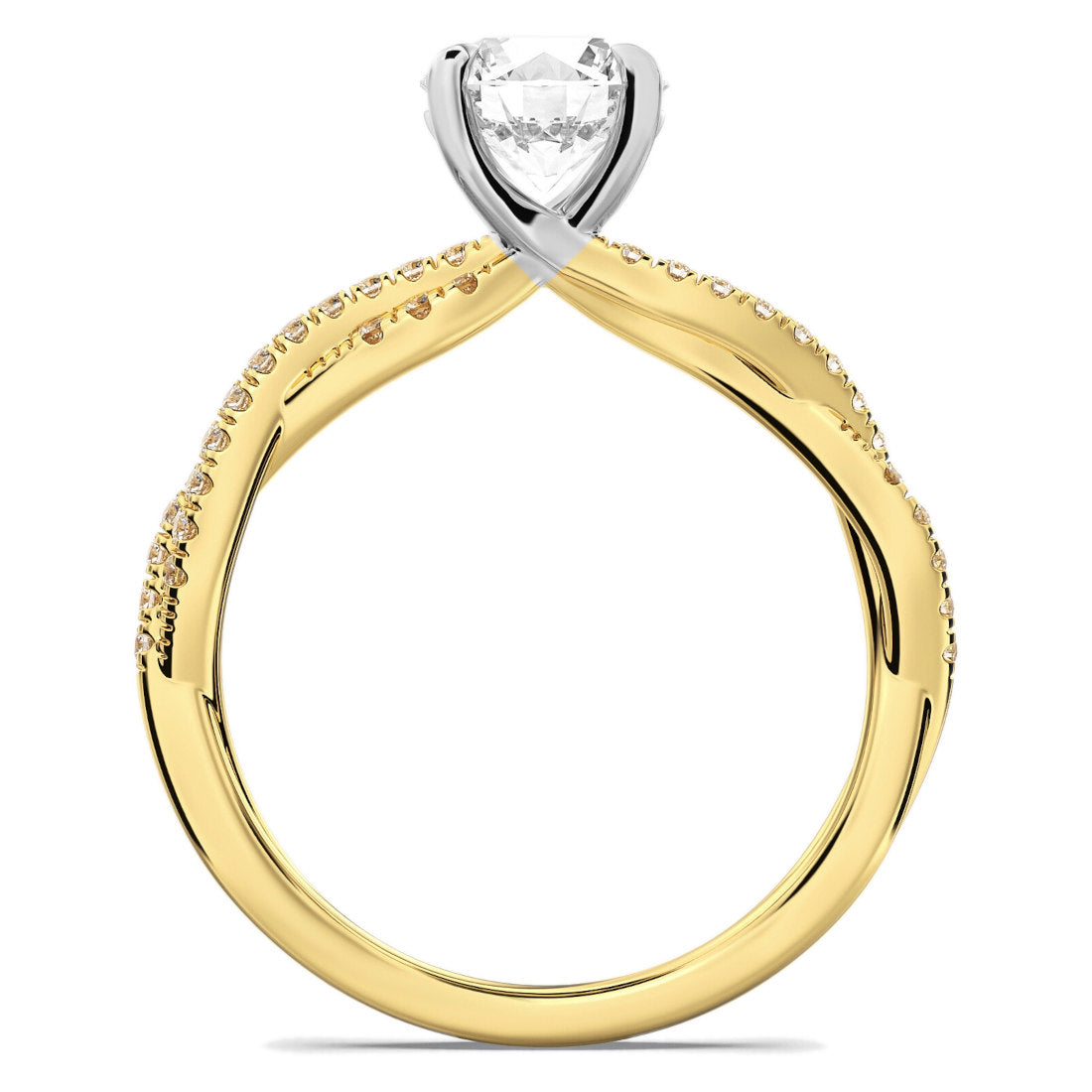 A mesmerizing symbol of unity and everlasting love, this engagement ring features two diamond-lined bands that intertwine in a graceful spiral. The entwined design draws the eye to your brilliant center stone, beautifully representing two souls becoming one in love. Pair it with a spiral wedding band for a wedding set that’s both timeless and endlessly dazzling—a true reflection of love without limits.