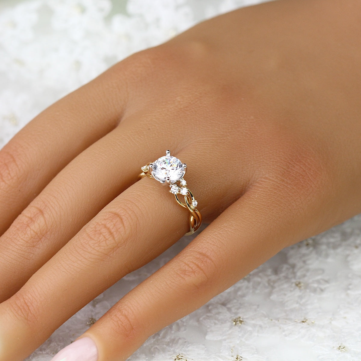 A beautiful tapestry of polished arches adorned with a sprinkling of round diamonds lead up to a brilliant round center stone. A spectacular representation of love's beauty throughout all the twists and turns of life.