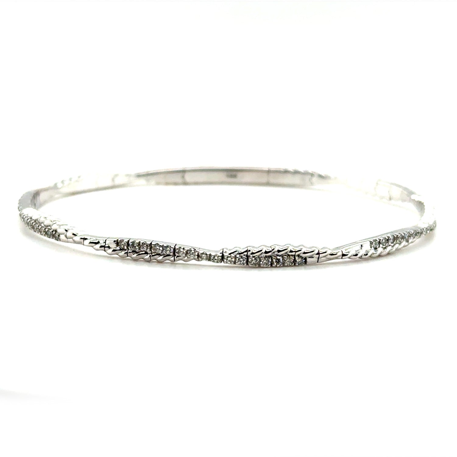 14 Karat White Gold Twisted Diamond Flexi Fashion Bangle Bracelet