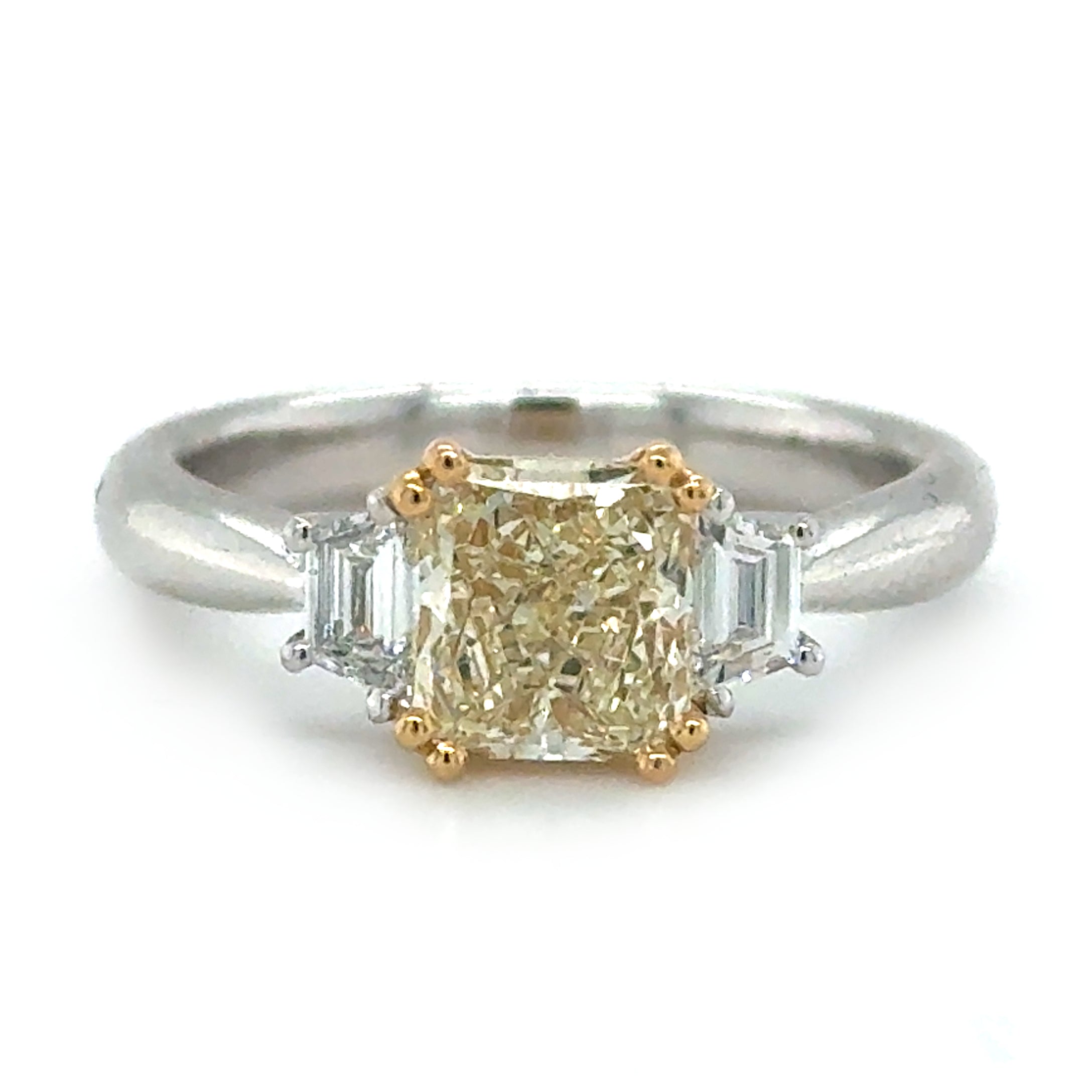 Platinum/18 Karat Yellow Gold Natural Yellow Diamond Three-Stone Engagement Ring